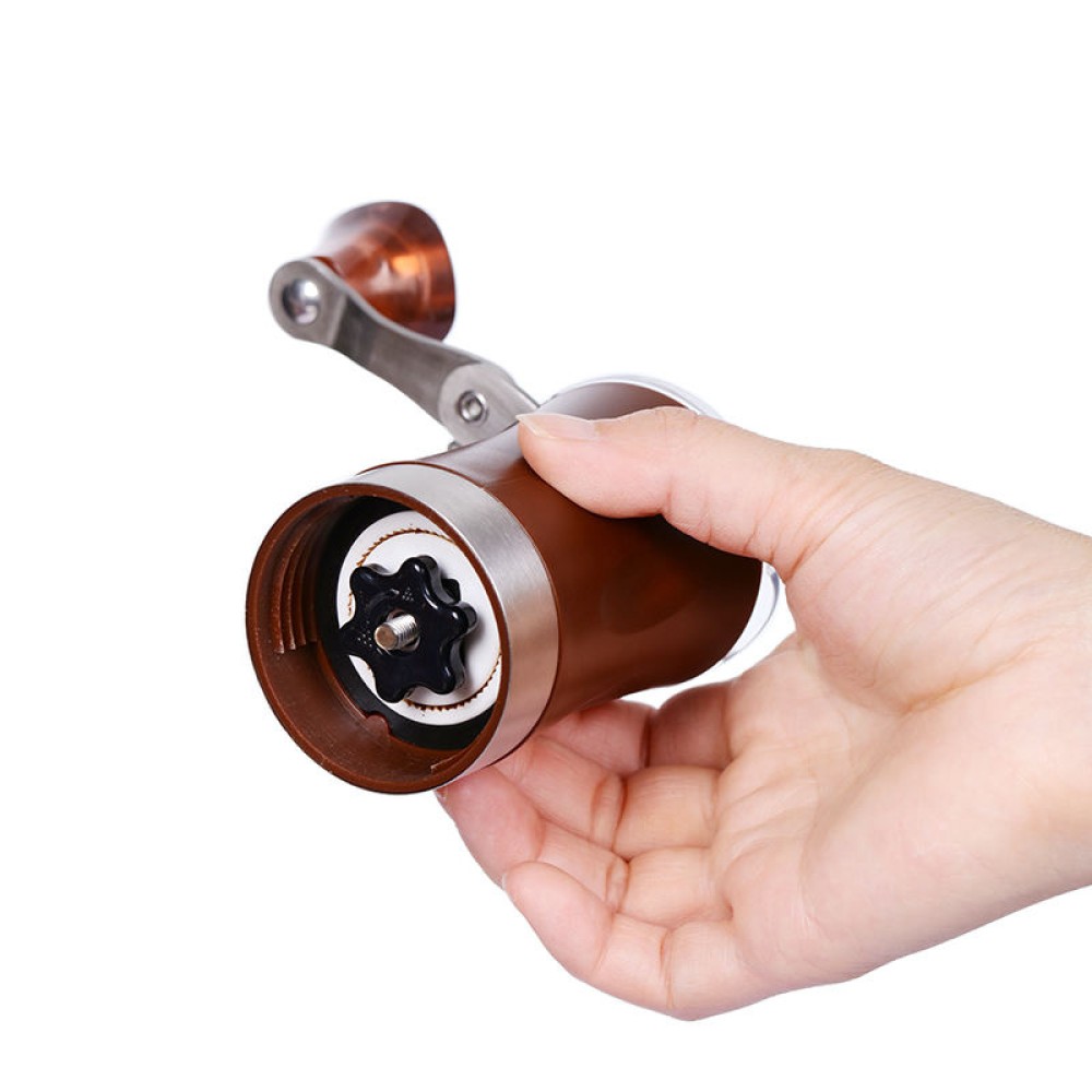 This manual coffee grinder blends classic design with modern convenience. It features a ceramic grinder core for even and stable grinding, minimizing heat buildup and preserving the aroma and flavor of the coffee beans. It supports adjustable grind settings, easily switching between fine and coarse, accommodating various brewing methods such as pour-over, French press, and moka pot. Equipped with a foldable metal handle, it's easy to store and carry while ensuring smooth and effortless operation. The glass base is not only aesthetically pleasing but also provides a clear view of the coffee grounds, enhancing the intuitiveness and precision of the grinding experience.