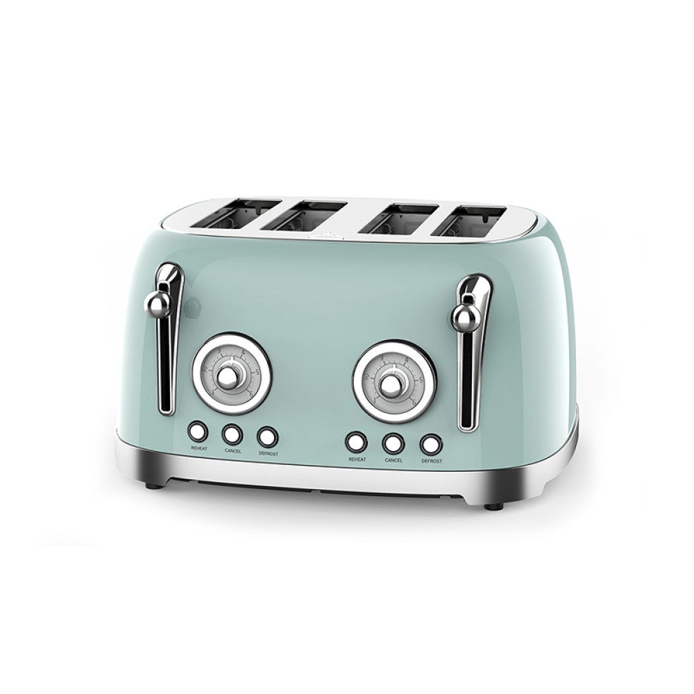 This toaster is designed for efficient breakfast preparation, featuring four extra-wide toasting slots that can handle multiple slices of bread simultaneously, easily meeting the needs of a large family. Whether it's thick-cut toast, bagels, or handmade bread, it adapts effortlessly, providing a more flexible user experience. The machine supports six adjustable toasting levels, allowing users to choose from light crispness to deep flaky goodness according to their preferences. The built-in defrost function quickly restores frozen bread to its softness and ensures even toasting, while the reheat function warms cooled bread without re-burning it, perfect for busy mornings. After toasting, the machine automatically pops the bread out, allowing for easy access without supervision and preventing burning.