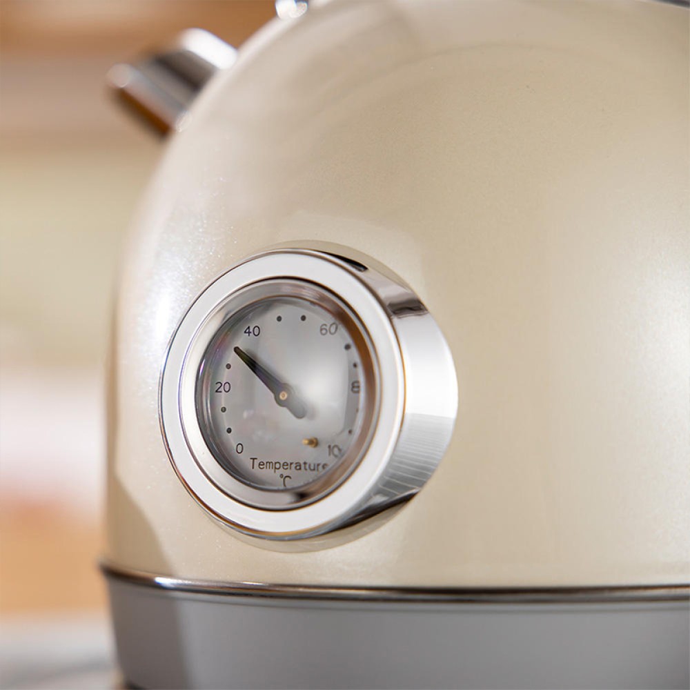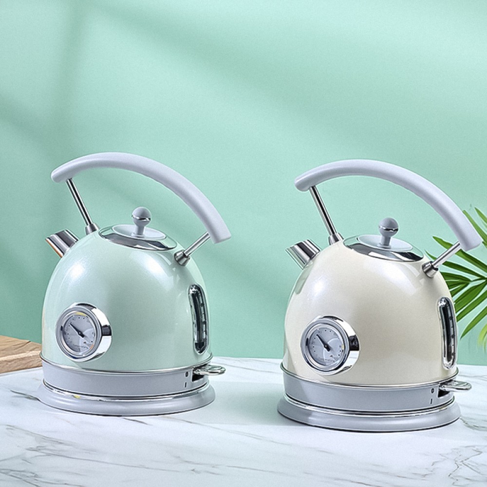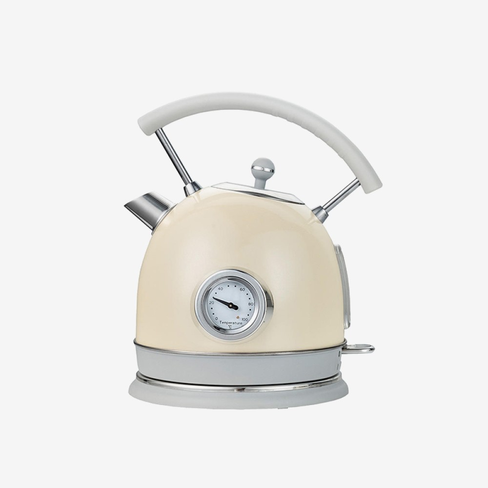 This electric kettle is designed for users who demand precise temperature control. It features a clear thermometer that displays the water temperature in real time, making it convenient for brewing coffee, tea, or other beverages. The bottom heating technology ensures even and rapid heating, saving time. The 360° rotating base design makes it easy to place and remove the kettle, convenient for both left- and right-handed operation. A built-in dry-boil protection function automatically shuts off the power when the water level is low, effectively ensuring safe use. With its simple and elegant overall appearance and practical functions, it is an ideal choice for home and office use.