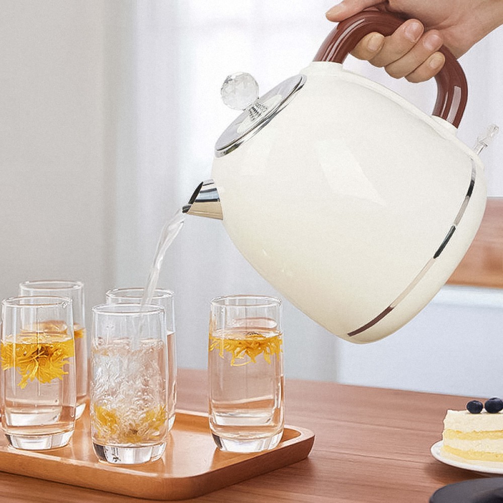 This electric kettle combines safety and efficiency in its design, specifically tailored for home and office use. It features a double-layer anti-scalding design, effectively insulating against heat to prevent burns and enhance safety. The inner liner is made of high-quality stainless steel, durable and easy to clean, ensuring safe and healthy water quality and maintaining stable performance even after prolonged use. Equipped with a 360° rotating base, it can be freely rotated for left- or right-handed operation, making it easier to place and remove the kettle. Combined with an intelligent anti-dry-boil function, it automatically shuts off when the water level is low or the kettle is empty, ensuring safety and preventing accidental damage.