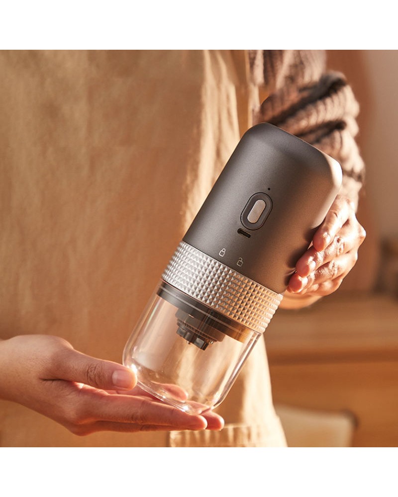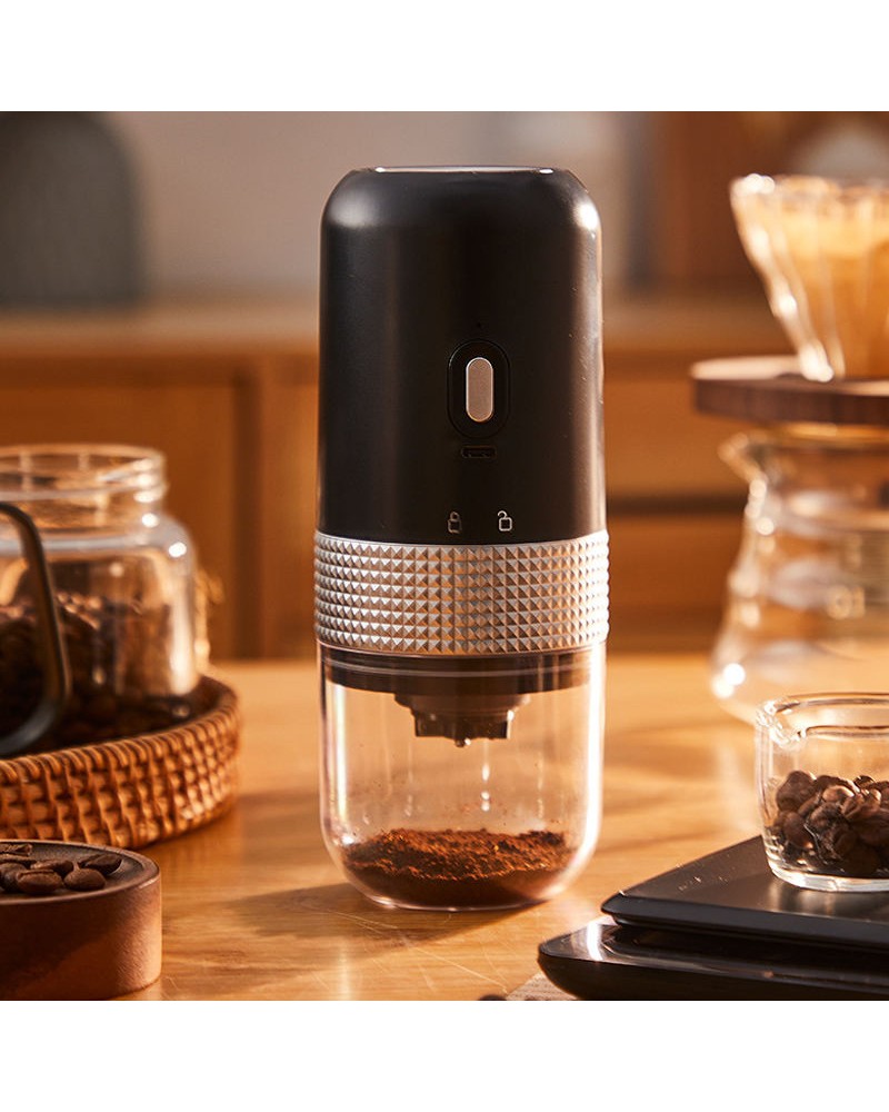 This electric coffee grinder is designed for coffee lovers who value quality and convenience. Its conical grinding disc structure ensures stable and even grinding of coffee beans, effectively preserving the aroma and flavor. Lightweight and with excellent low-noise operation, it provides a quieter and more comfortable grinding experience. It supports multiple adjustable grinding modes, allowing for one-touch switching from coarse to fine grinds, catering to various brewing methods such as pour-over, espresso, and French press. The built-in battery frees you from power constraints, allowing you to easily enjoy freshly ground coffee at home, in the office, or while traveling.