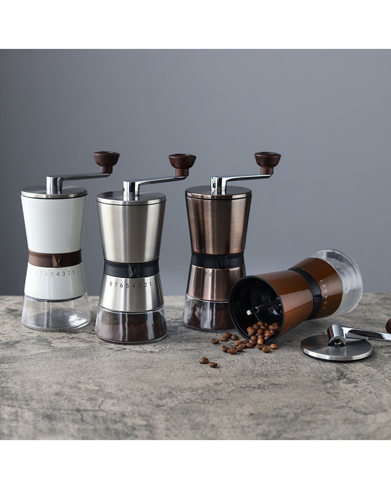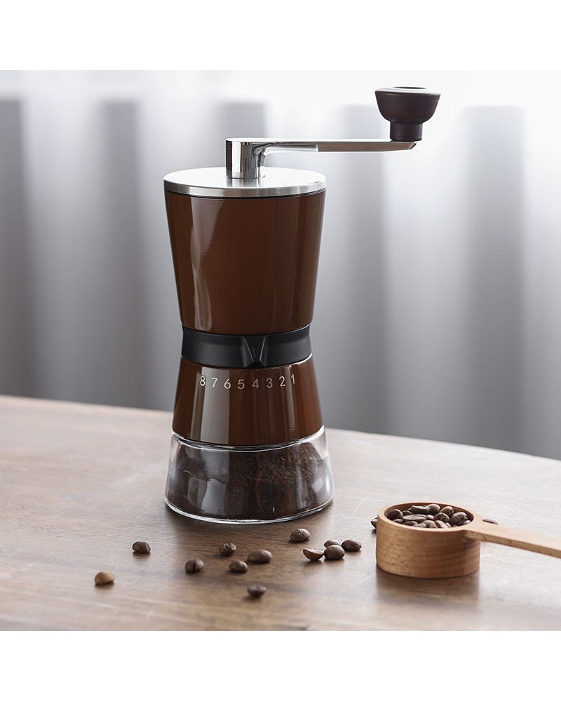 This manual coffee grinder combines a durable stainless steel grinder core with a sturdy glass base, offering a grinding experience that is both stylish and practical. The robust and wear-resistant stainless steel grinder core ensures a uniform and stable grind of coffee beans, better preserving the aroma and flavor of the coffee. It supports adjustable grind settings, easily switching between fine and coarse, and is compatible with various brewing methods such as espresso, pour-over, and French press. The hand crank design allows for smooth operation and requires no power source, letting you enjoy freshly ground coffee anytime, anywhere.