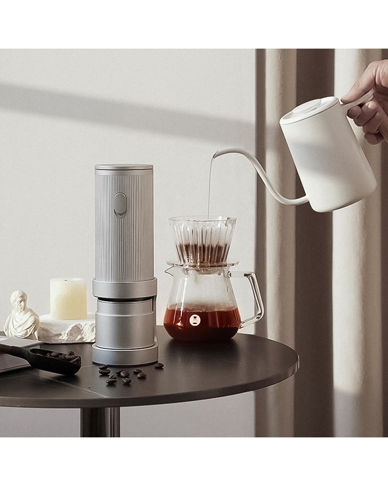 This coffee grinder combines convenient electric operation with efficient grinding technology. It features a durable stainless steel grinding core that ensures even and stable grinding, maximizing the preservation of coffee bean aroma and flavor. It supports adjustable grind settings, easily switching from coarse to fine, and is suitable for various brewing methods including pour-over, French press, moka pot, and espresso. One-button electric operation makes grinding easy and efficient, saving time and effort. The built-in rechargeable battery eliminates the need for a power cord, making it convenient to carry and use. Enjoy freshly ground coffee anytime, anywhere, whether at home, in the office, or traveling.
