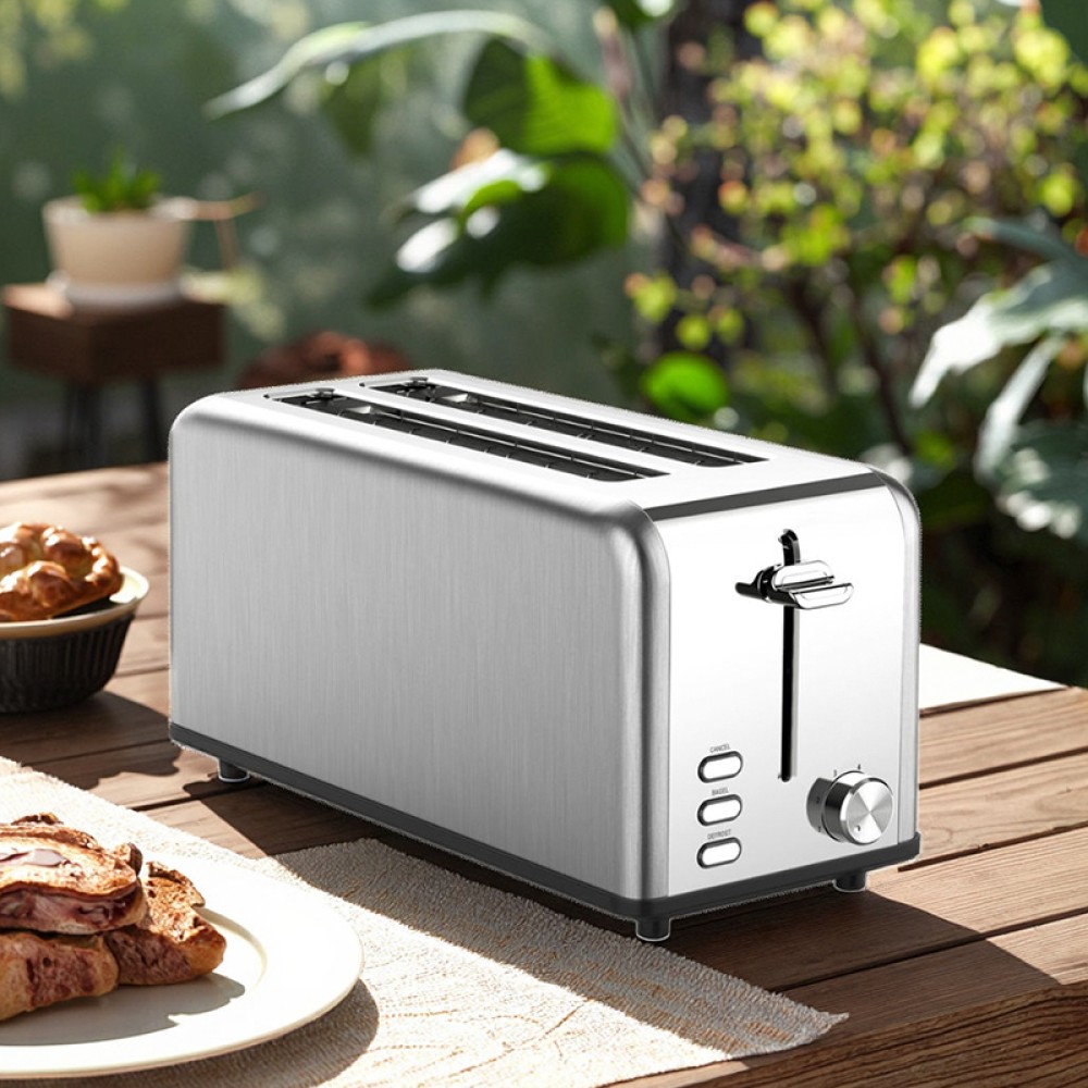 This compact and easy-to-use toaster is the perfect choice for your everyday breakfast. The automatic pop-up function allows bread to easily pop out after toasting to the ideal golden brown, preventing over-toasting or burning your hands when removing it. Equipped with a reheat function, it easily reheats cooled bread slices without additional toasting, maintaining their soft texture and temperature. The machine features a removable crumb tray to easily collect crumbs that fall during toasting, making cleaning and daily maintenance easy. Its compact and modern design is both aesthetically pleasing and practical, suitable for home kitchens and small office environments, making every breakfast easier and more enjoyable.