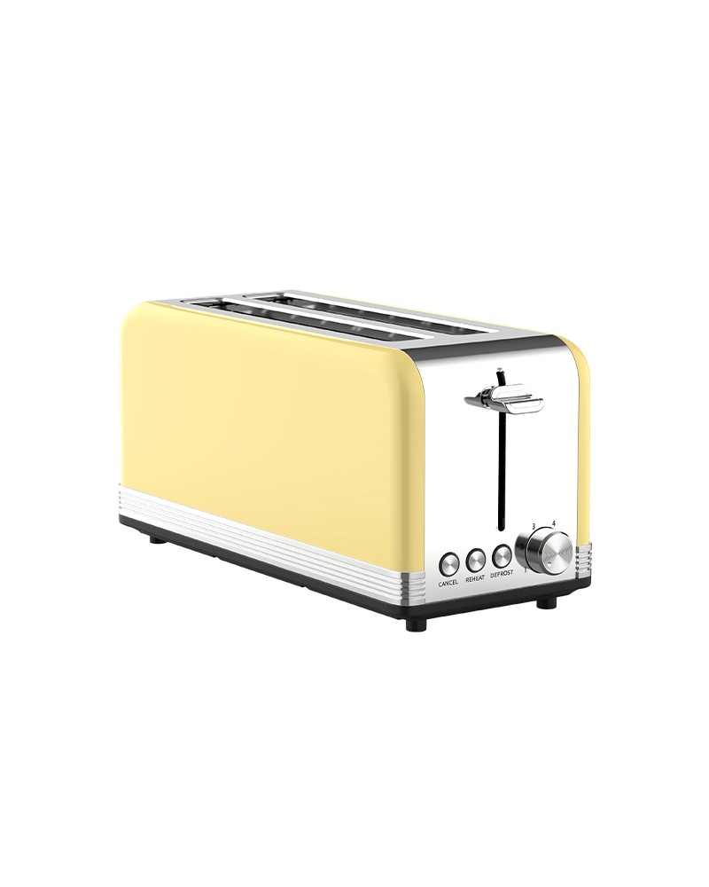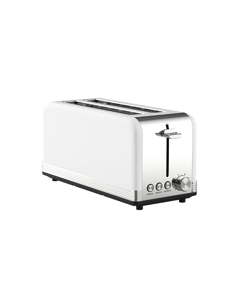 This toaster is easy to operate and fully functional, making it ideal for breakfast and everyday baking. Equipped with an automatic pop-out function, bread easily pops out when toasted to the perfect golden brown, preventing over-toasting or burning your hands when removing it. The defrost function quickly reheats frozen bread slices, restoring their soft texture without waiting to thaw. The reheat function allows you to warm bread without additional toasting, maintaining its ideal temperature and texture. The machine features a removable crumb tray for easy collection of crumbs dropped during toasting, making cleaning easier. Its compact and modern design combines aesthetics and practicality, making it ideal for home kitchens and offices.