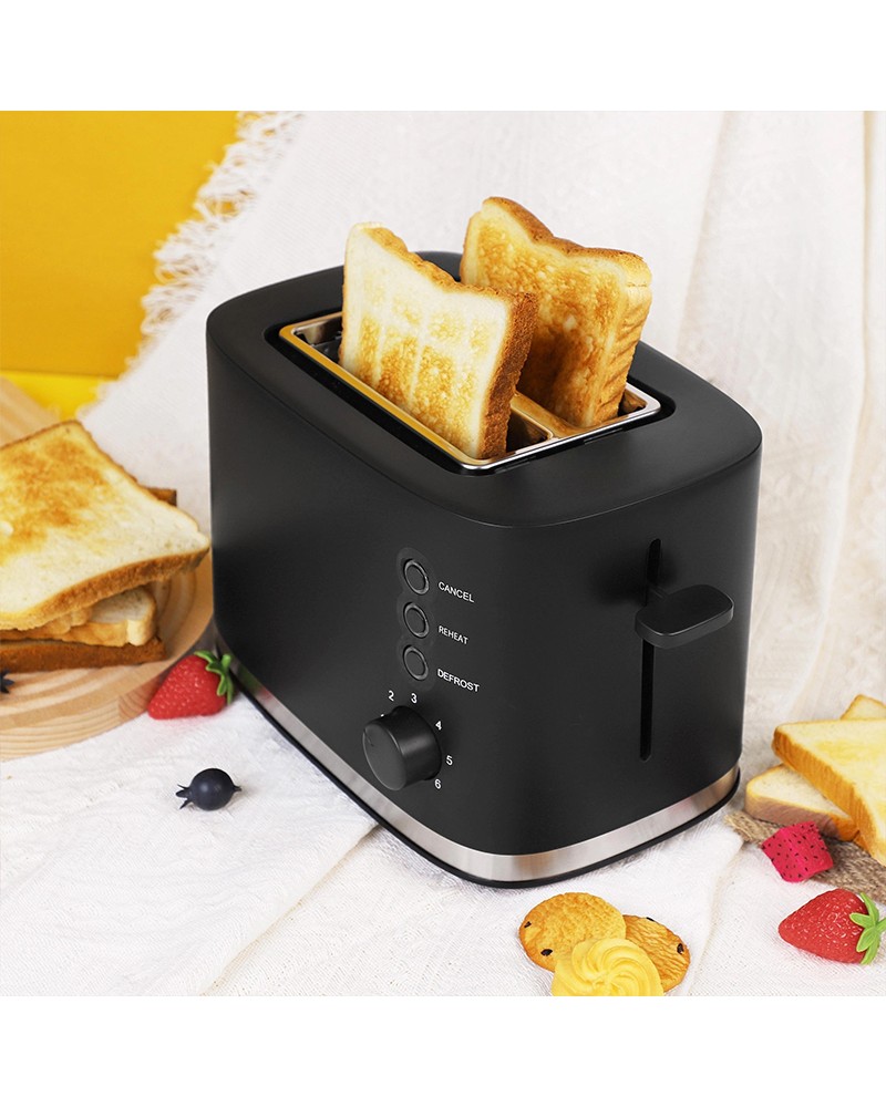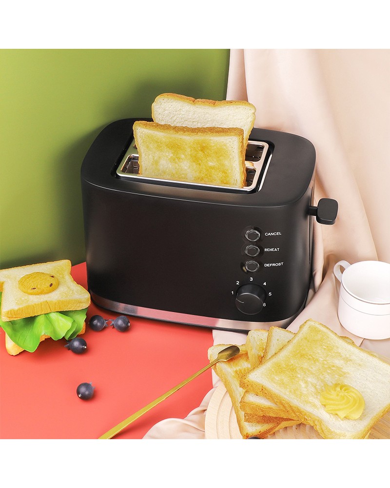 This toaster is designed for home and office use, combining efficiency and convenience. The double-slot design allows you to toast two slices of bread or different thicknesses of toast simultaneously, catering to diverse breakfast needs. The automatic pop-out function ensures the bread pops out safely after toasting, preventing over-toasting or burns, making it easier and more convenient to use. Equipped with 6 adjustable toasting levels, you can precisely adjust the toasting degree to your liking, easily achieving from slightly crisp to golden brown and crunchy. A removable crumb tray at the bottom easily collects breadcrumbs, making cleaning convenient and keeping your kitchen tidy.