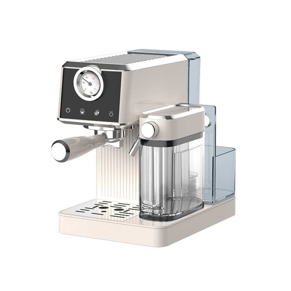This espresso machine combines modern technology with convenient operation, bringing a professional-grade coffee-making experience to home or office settings. Equipped with a smart control panel, users can easily select coffee modes and adjust flavor profiles for more precise brewing control. The built-in automatic milk frother quickly creates fine, creamy milk foam, making lattes, cappuccinos, and other coffee drinks readily available. A removable transparent water tank allows for easy monitoring of water levels, making refilling and cleaning easier. A non-slip base ensures operational stability, guaranteeing safe and reliable brewing every time.