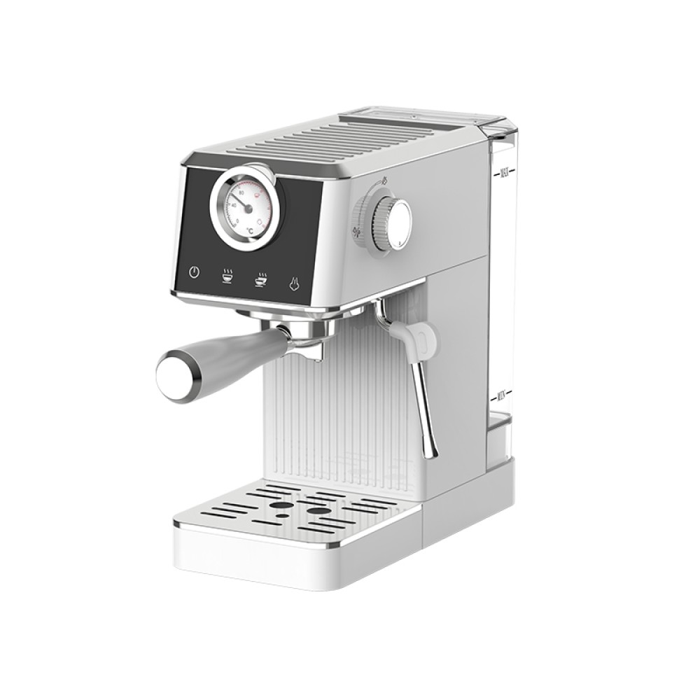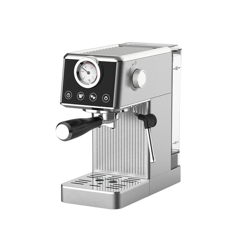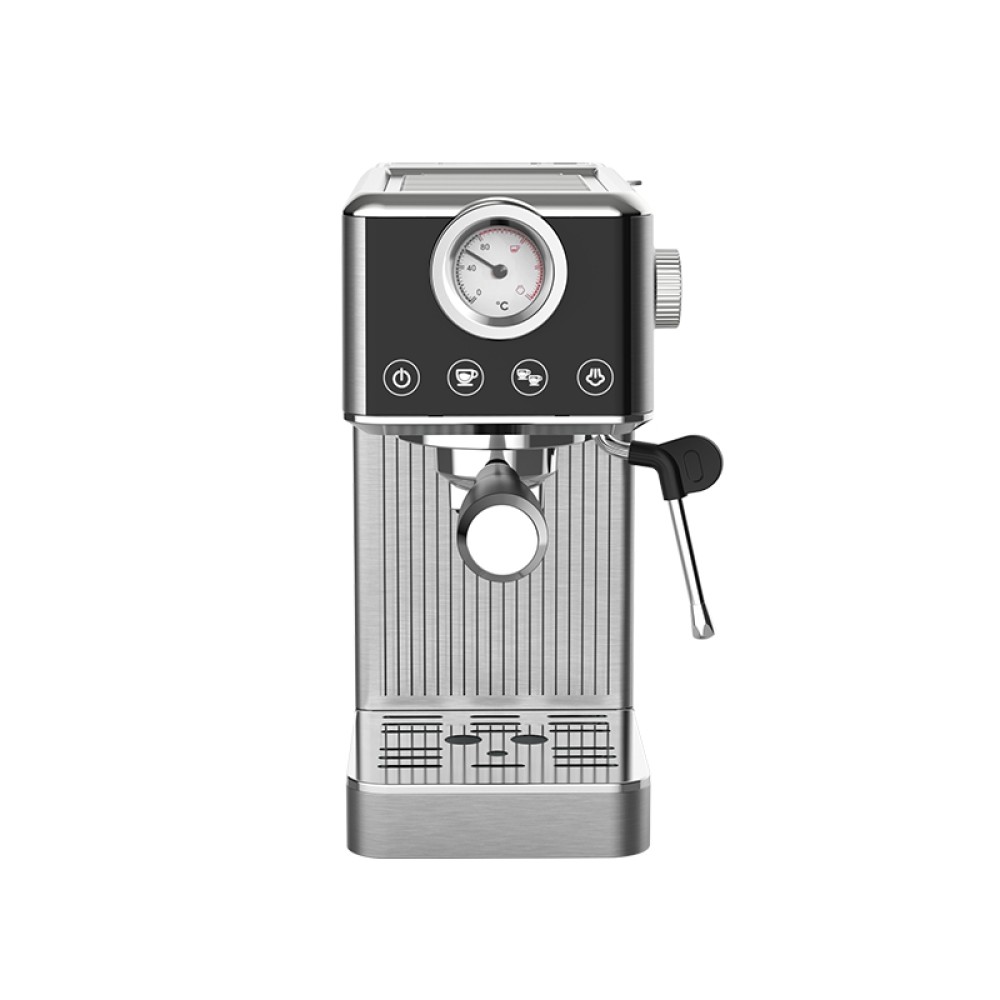 This espresso machine is designed with professional performance and ease of use at its core. It features a touchscreen control panel for intuitive and smooth operation, making coffee extraction settings clear at a glance. An integrated thermometer displays the water temperature in real time, helping users accurately control the extraction process and brew a full-bodied, complex coffee. A stainless steel cup warmer on top preheats the cups, preventing temperature differences from affecting flavor and ensuring every cup of coffee is closer to the quality of a professional coffee shop. The removable transparent water tank facilitates daily refills and deep cleaning; combined with a non-slip base, it effectively enhances overall stability, making extraction safer and more reliable.