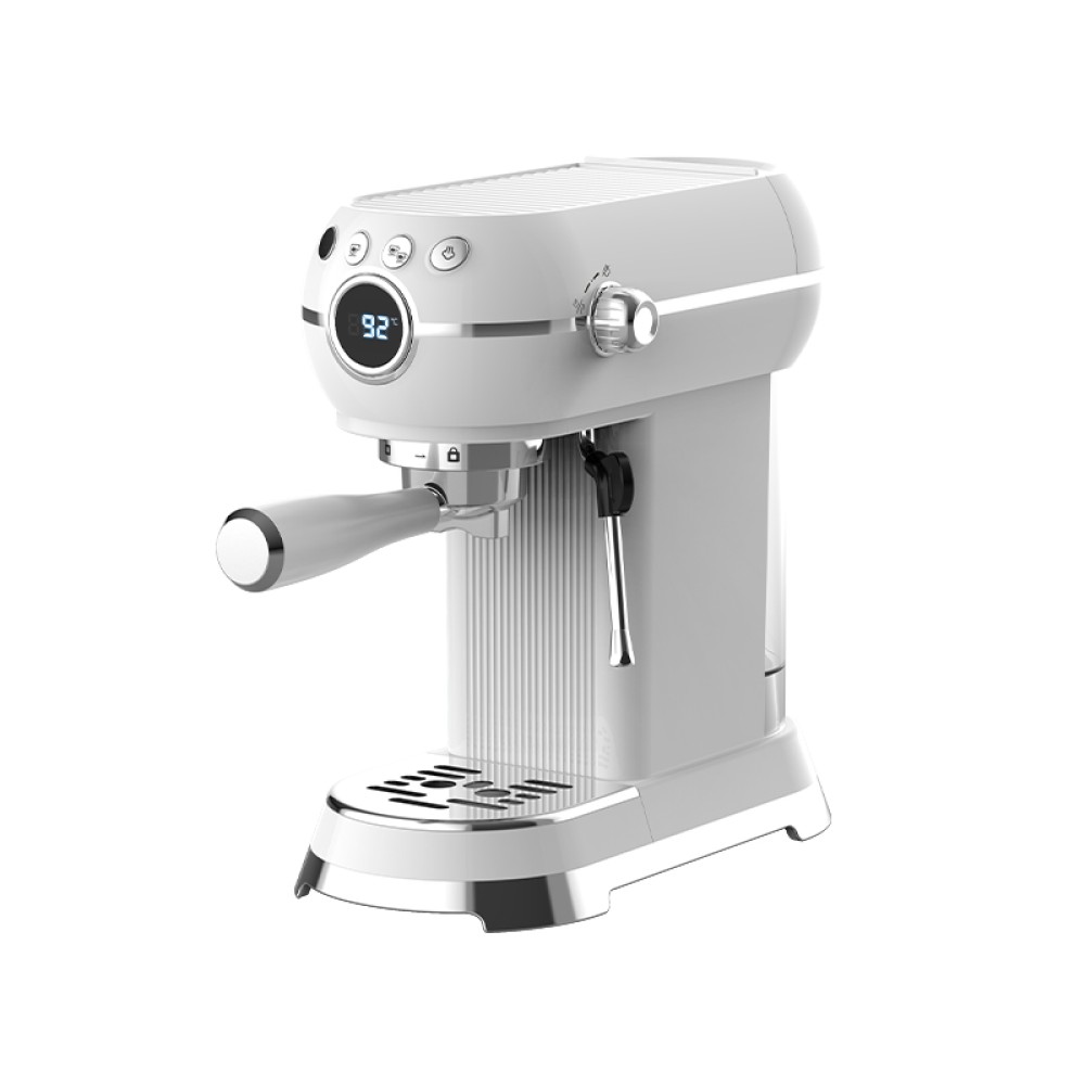 This espresso machine is designed with practicality and stability at its core. It features button controls with clear logic and feedback, making coffee extraction more intuitive and easier to control. Equipped with a temperature display, it monitors the extraction temperature in real time, helping users to more accurately control flavor and taste. A stainless steel cup warmer on top preheats the cup, ensuring the coffee is at the ideal serving temperature. The machine features a removable transparent water tank, making water level easy to see and refilling and cleaning quick and easy. Furthermore, the espresso machine is equipped with a removable foaming nozzle, easily creating rich milk foam, suitable for making lattes, cappuccinos, and other specialty coffees, and also making cleaning easier.