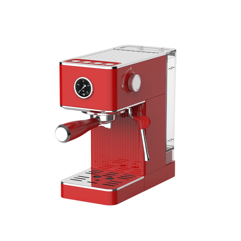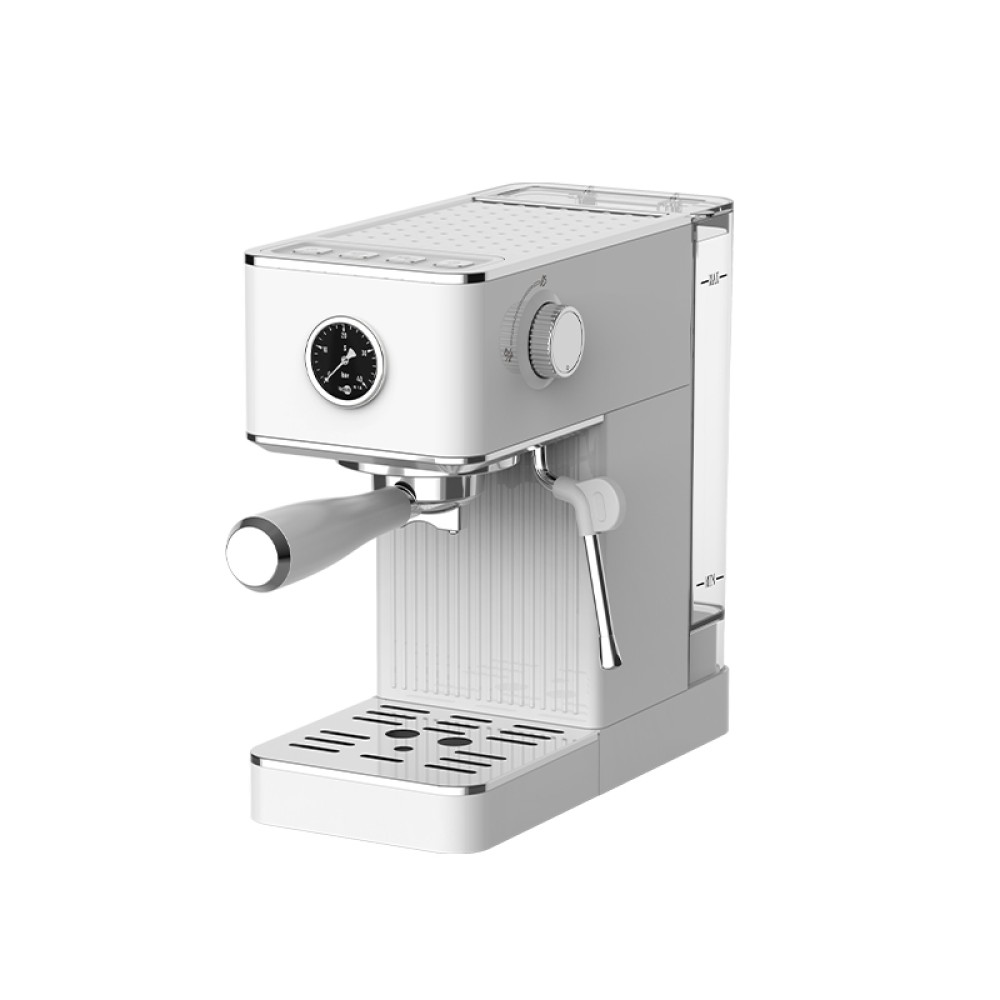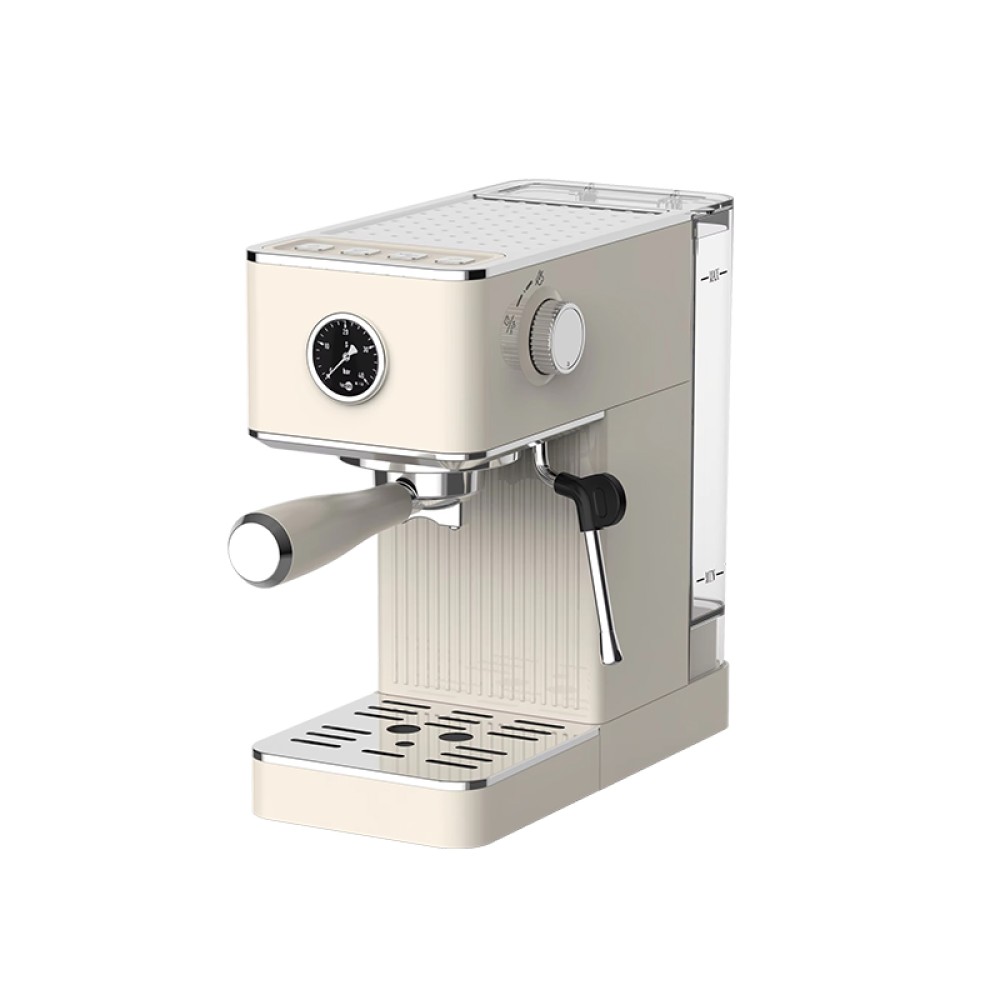This espresso machine prioritizes stable operation and user-friendly design. It features button controls with clear feedback and simple operation, allowing users to quickly set up the extraction process. The machine is equipped with a temperature display, showing the extraction temperature in real time, helping users accurately control the brewing process for a superior coffee flavor. A stainless steel cup warmer on top preheats the cups, maintaining the ideal coffee temperature and enhancing the overall taste experience. The machine features a removable transparent water tank for easy refilling and daily deep cleaning, with visible water levels for added peace of mind. A removable drip tray at the bottom catches excess water or coffee residue, effectively keeping the work surface clean, and its easy removal simplifies daily maintenance.
