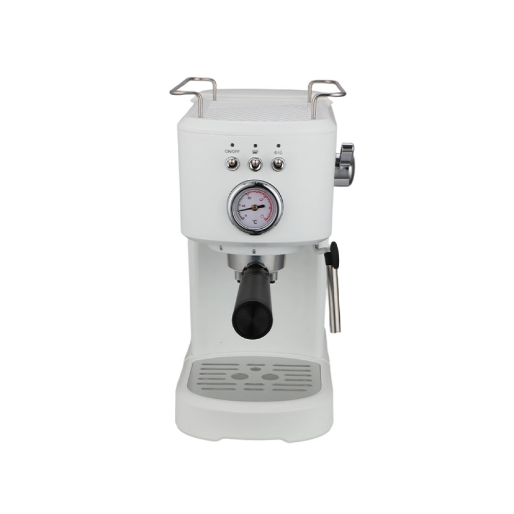 This espresso machine is designed for coffee lovers in homes and offices, combining easy operation with professional performance to deliver a high-quality coffee experience. The lever control design is intuitive and flexible, allowing you to easily control the extraction process and make espresso more convenient. The temperature display function monitors the brewing temperature in real time, ensuring every cup of coffee is aromatic and smooth. The machine features a removable transparent water tank, making the capacity clearly visible and refilling and cleaning easier. The built-in high-pressure frothing function easily creates fine, dense milk foam, suitable for lattes, cappuccinos, and other coffee drinks. A non-slip base enhances overall stability and makes operation safer and more reliable.